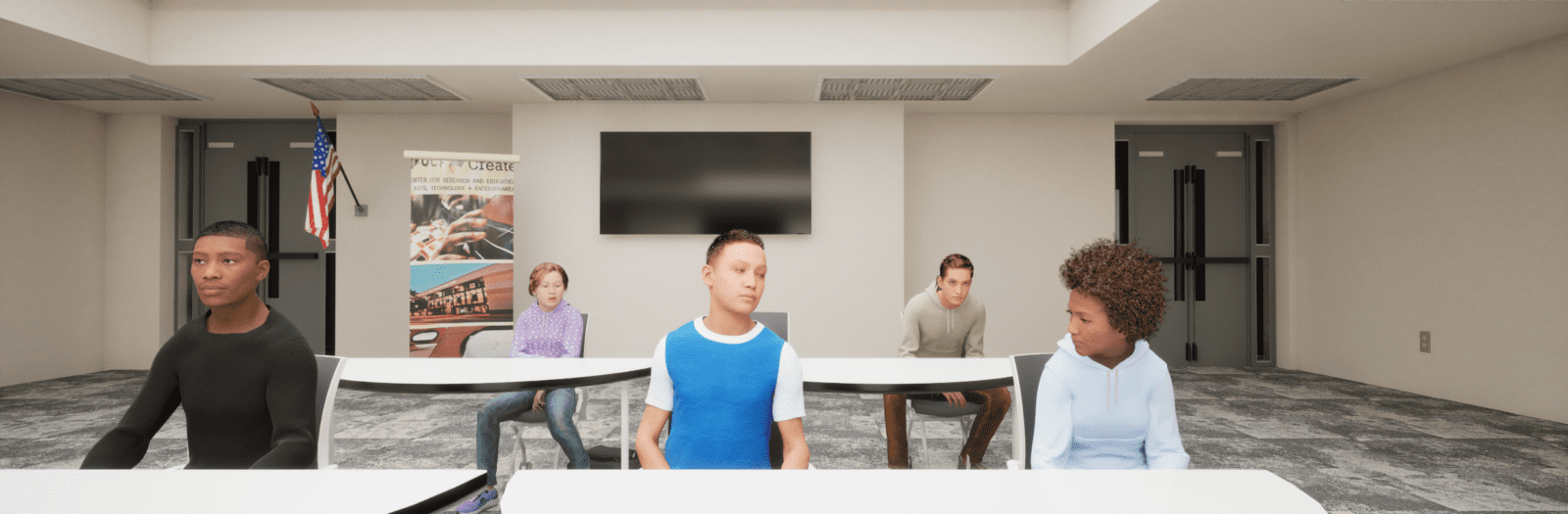 In the experience, the user can be placed in a selection of venues seated in front of an audience, allowing the user to simulate real-world presentation conditions. The experience functions as a form of exposure therapy, enabling users to practice delivering presentations in a controlled, repeatable environment.